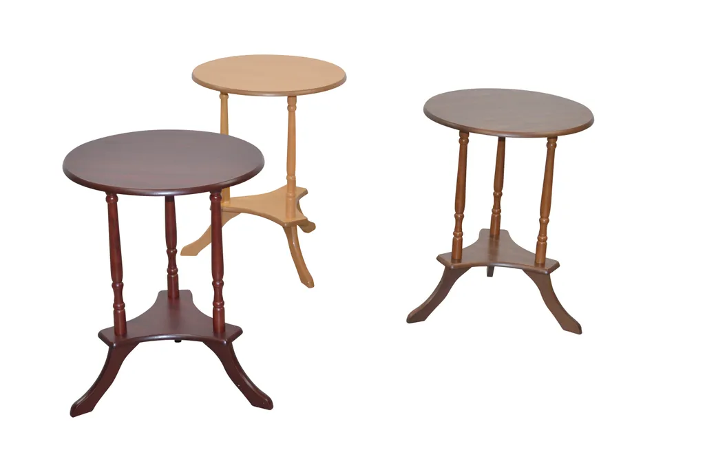 Beistelltisch mit gedrechselten Beinen aus Massivholz „Rubberwood“, holzfarben gebeizt und lackiert. Unten Abstellboden, oben runde Tischplatte aus MDF. Alle Kanten abgesoftet. Belastbarkeit ca. 10 kg. Lieferung vom Beistelltisch erfolgt zur Selbstmontage, inklusive Aufbauanleitung. Maße ca. cm: (Ø/H) 40/51.