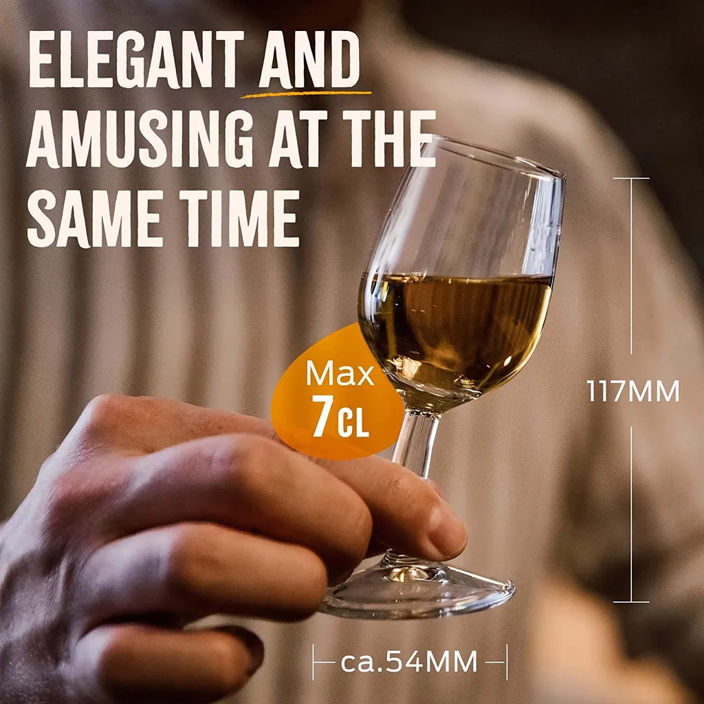 Mit max. 7cl (auch perfekt für 2cl & 4cl – Keine Eichung) haben die Gläser die optimale Größe und schaffen zusätzlich den perfekten Spagat zwischen lustig & elegant.