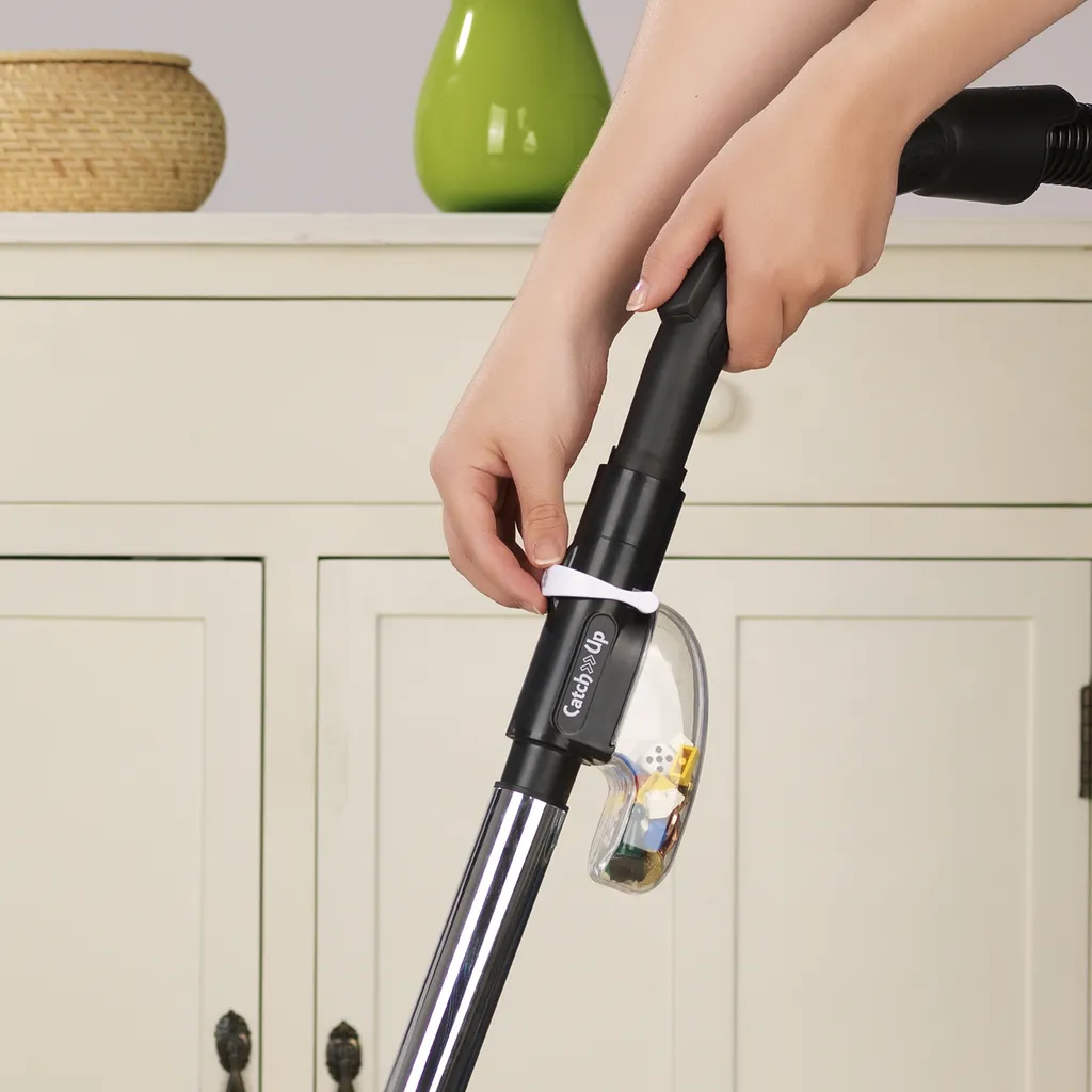 Mit dem Catch-Up Staubsaugeraufsatz werden Kleinteile, beim Saugen, aufgefangen und werden nicht im Staubsaugerbeutel verschwinden. Der Aufsatz wird ganz einfach zwischen Staubsauger-Griff und Saugrohr befestigt. Der Auffangbehälter ist ganz einfach abzunehmen und somit leicht zu reinigen. Sobald Sie den Hebel für die Filterfunktion betätigen werden die Kleinteile in einem separaten Auffangbehälter geleitet. Der Catch-Up Staubsaugeraufsatz ist passend für fast jeden Bodenstaubsauger. Im Lieferumfang enthalten sind zwei Adapter.