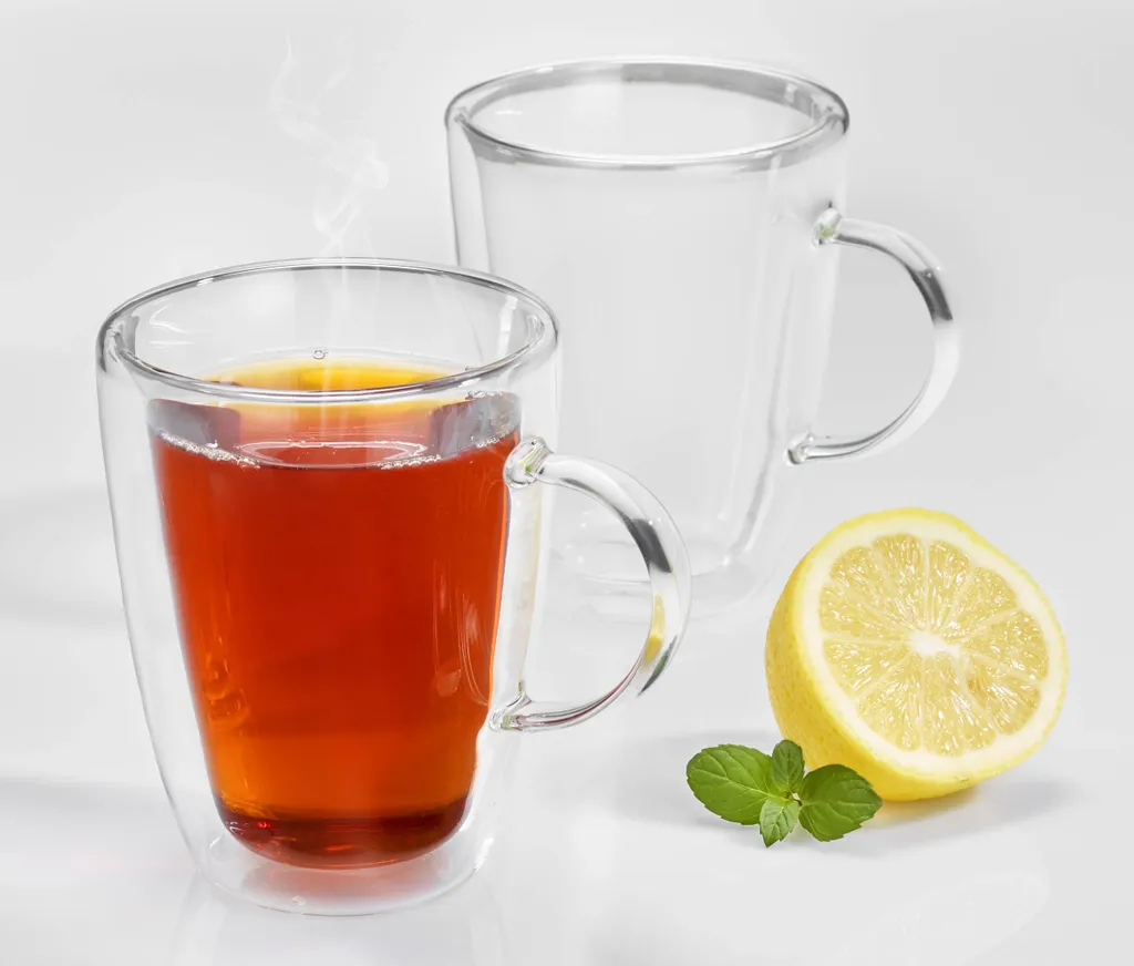 Dank der doppelwandigen Ausführung isoliert die Luftschicht zwischen den Glaswänden- kein Verbrennen der Finger.