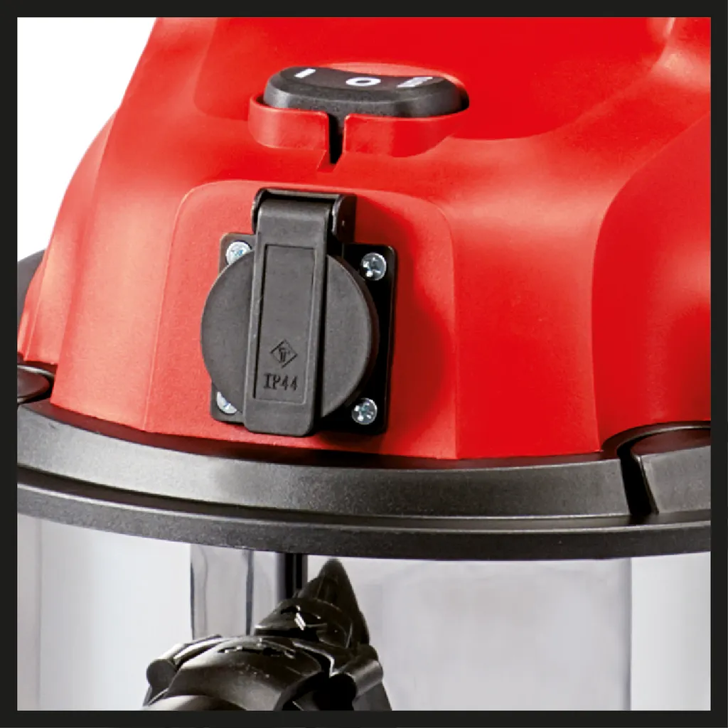 Der Einhell Nass-Trockensauger TC-VC 1930 SA ist ein 1.500 Watt starkes Hilfsmittel für tiefgreifende und gründliche Reinigungsaufgaben. Ein Nass-Trockensauger leistet bei allen Arten wasserunempfindlicher Oberflächen sorgfältige Dienste. Im Haushalt, bei Teppichen oder fixierten Textilien, Fliesen oder allen Arten von offenporigen Kacheln hilft eine einfache Oberflächenbehandlung oft nicht. Auch das Innere aller Arten von Kraftfahrzeugen kann mit einem Nass-Trockensauger bis in die Textilspitzen gereinigt werden, Sitze und Himmel gleichermaßen wie die Teppiche und die Verkleidung. Der Nass-Trockensauger von Einhell ist mit einem rostfreien und stabilen Edelstahlbehälter mit 30 Liter Fassungsvermögen ausgerüstet. Zum einfachen Entleeren des Behälters ist eine Wasserablassschraube integriert. Das Schlauchsystem mit Ø 36 mm bietet hohen Luft- und Schmutzdurchsatz. Der Blasanschluss dient dem Ausblasen von schwer zugänglichen Stellen, zum Beispiel in verwinkelten Ecken oder hinter massiven Schränken. Große Räder und Rollen sorgen für den einfachen Transport und die Flexibiltät im Betrieb. Zudem ist eine automatische Gerätesteckdose am Gehäuse integriert für den Anschluss von Elektrowerkzeugen. Ordnung in den Einsatz bringen die praktische Zubehörhalterung und die Kabelhalterung am Gehäuse. In der Lieferung inklusive ist ein 2,50m-Plastiksaugschlauch mit zweiteiligem Verlängerungsrohr, die Kombidüse für Teppich- und Glattböden sowie eine Fugendüse und außerdem der Schaumstofffilter und der Faltenfilter für die sofortige Inbetriebnahme.