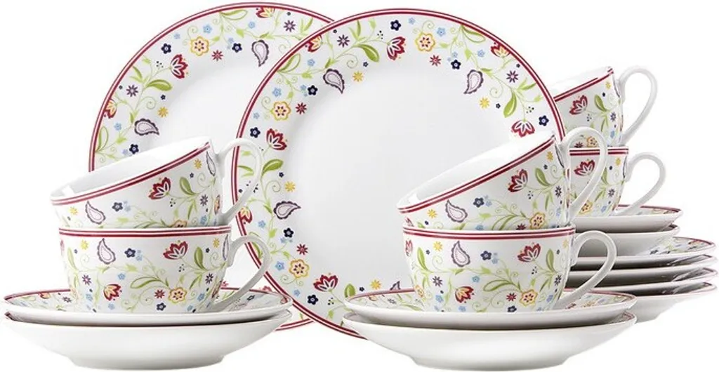 Das Set besteht aus 6x Kuchenteller 20cm, 6x Kaffeetassen und 6x Kaffeeuntertassen.
