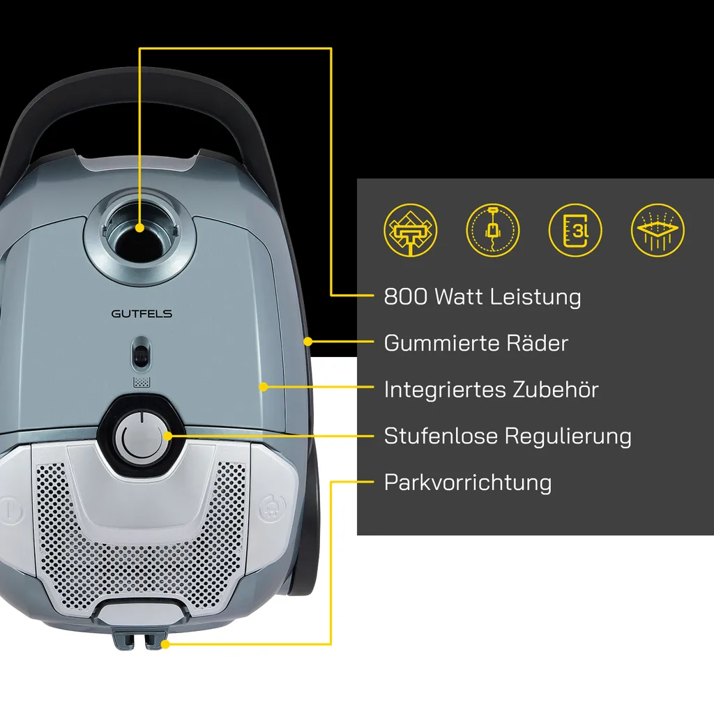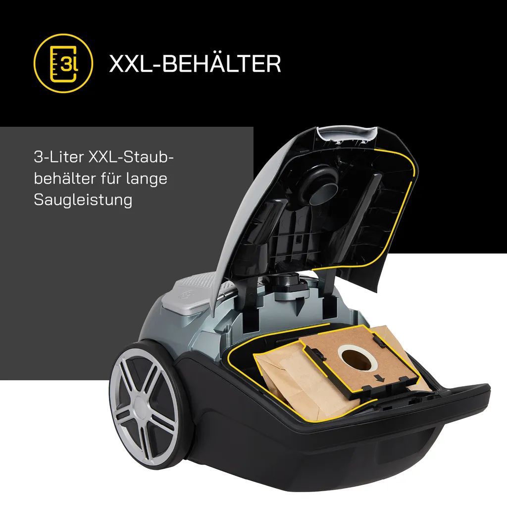 - Lange Saugleistung – durch den 3-Liter-XXL Staubbehälter wird eine lange Saugleistung bewerkstelligt
