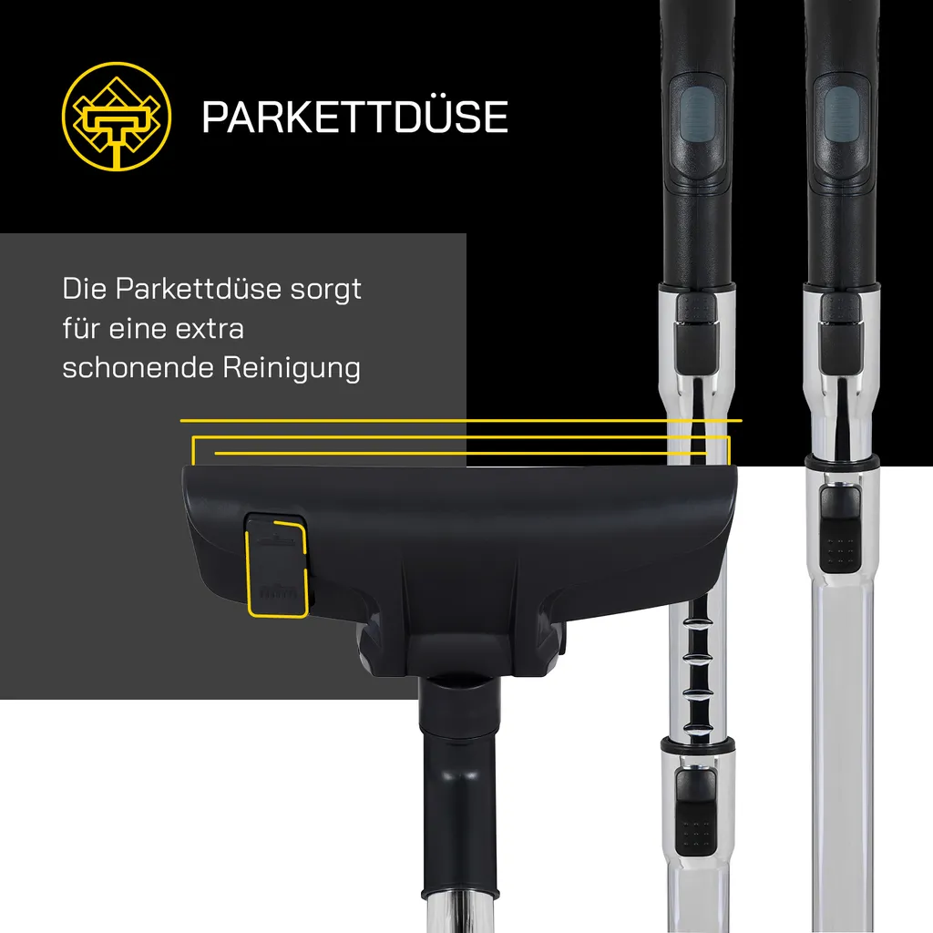 - Parkettdüse – Inklusive Parkettdüse für eine extra schonende Reinigung