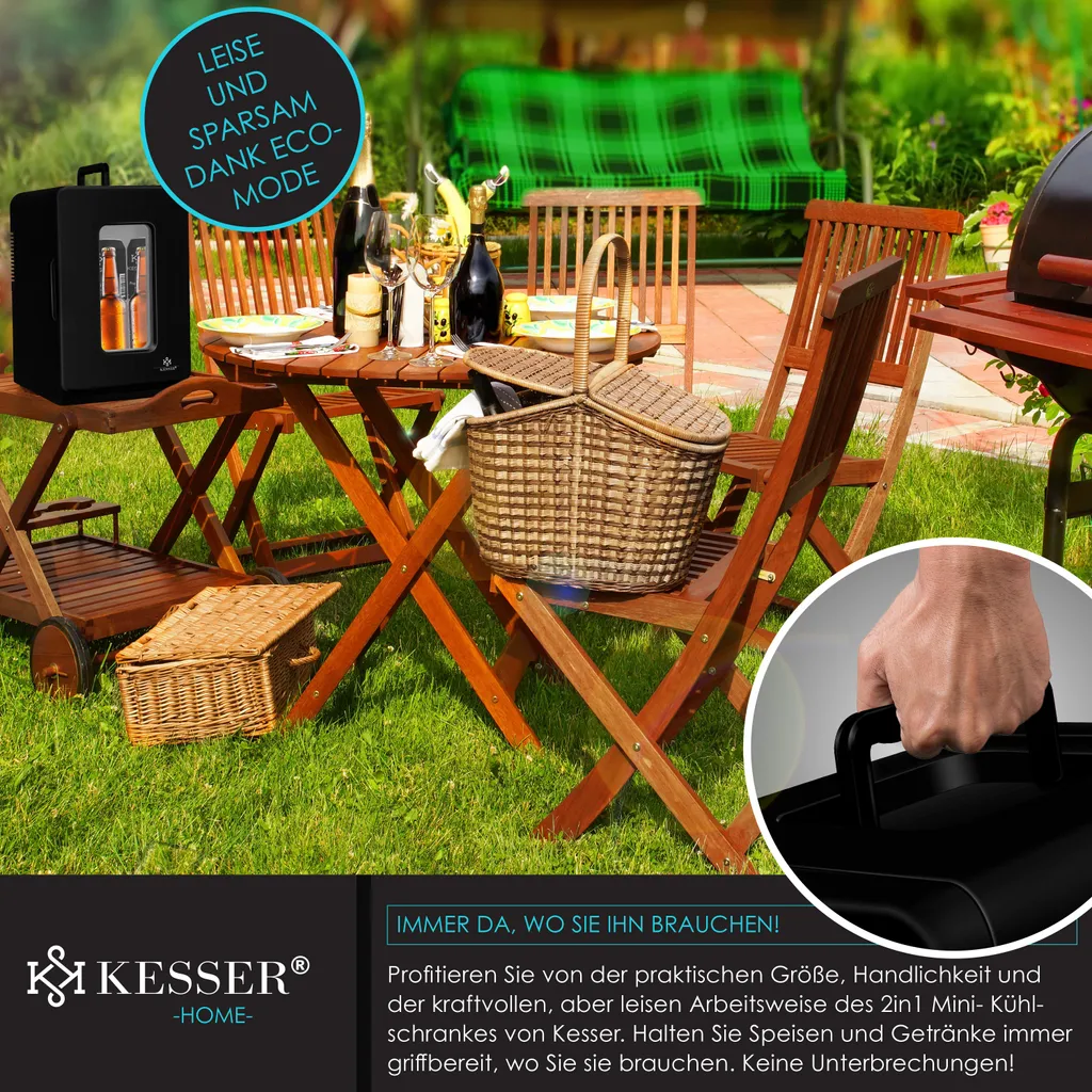 KESSER Mini-Kühlschrank 12V DC/220V mit einer energiesparenden Heiz- und Kühlfunktion, ideal für unterwegs, abnehmbare Zwischenböden, Kabel austauschbar und damit nutzbar als Autokühlschrank