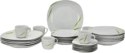 Die leicht eckige Form und das grün / graue Gräserdesign geben dem Kombiservice eine ganze besondere Ausstrahlung.