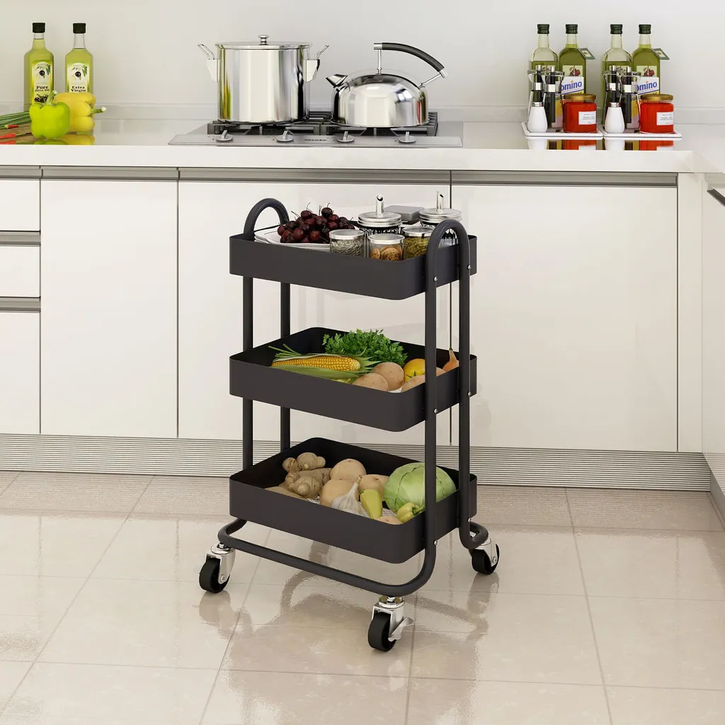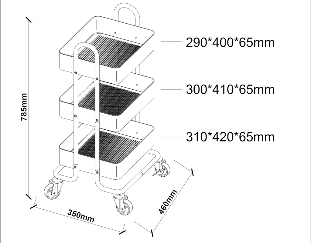 Der praktische Rollwagen ist vielseitig einsetzbar und kann in der Küche, im Badezimmer und vielen weiteren Räumen verwendet werden. Durch die vier Rollen lässt er sich schnell und einfach verschieben. Die drei Ablagekörbe sorgen für eine sortierte Aufbewahrung und eignen sich für sämtliche Gegenstände.