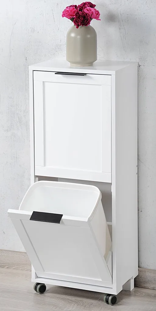 Der Küchenwagen mit 2 Mülleimern der bewährten Marke KESPER hat alle zuvor genannten Merkmale. Es ist ein Produkt, das Funktionalität mit moderner Form kombiniert. Dank seiner Maße: 36 cm x 24 cm Breite x 94 cm Höhe ist nicht nur in der Küche, sondern auch im Bad, WC oder Flur ideal. Zwei Regale halten Kochbücher, Gewürze oder Küchenzubehör oder andere benötigte Dinge in Reichweite.