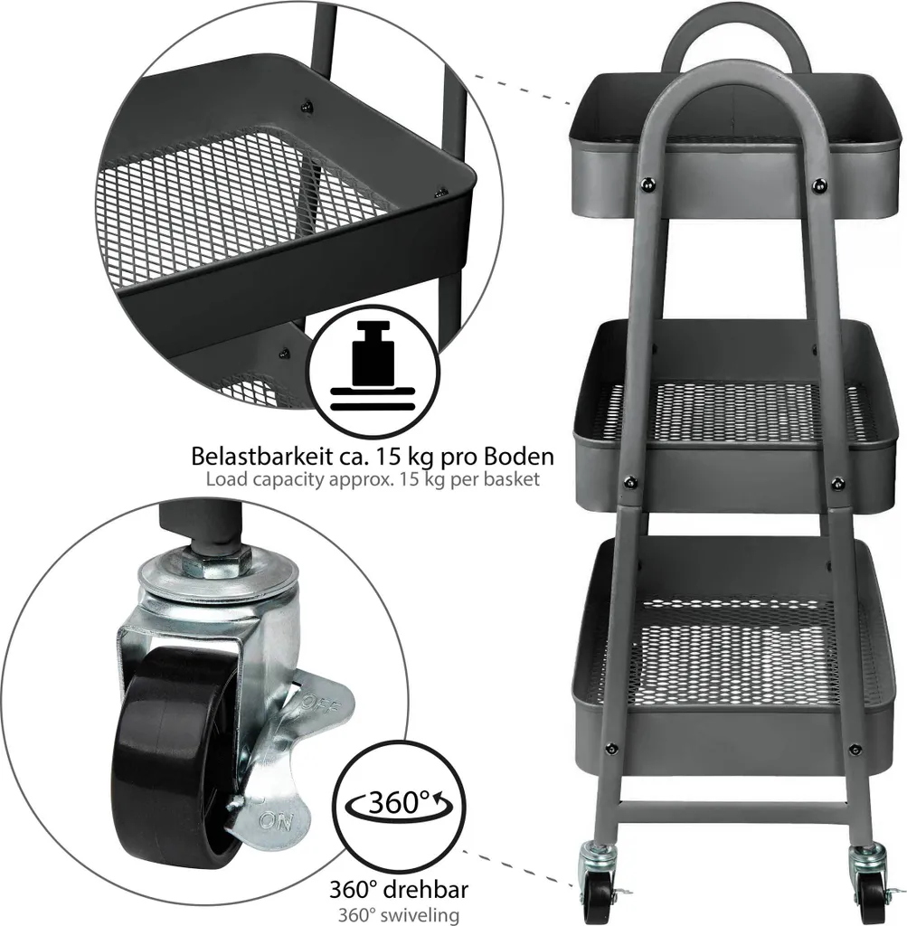 – Praktischer Rollwagen für Küche, Bad, Wohnzimmer oder Büro im angesagten Vintage Stil
