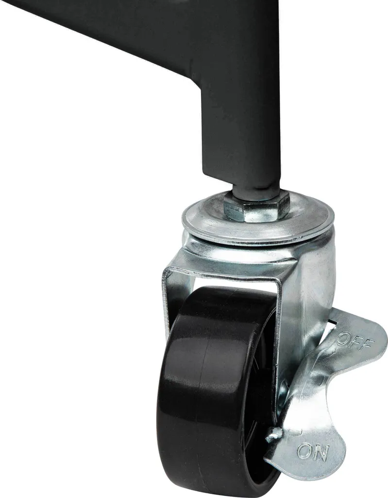 – Alle Rollen sind um 360° drehbar, 2 Rollen verfügen über eine Feststellbremse, sodass der Beistellwagen einfach bewegt und abgestellt werden kann