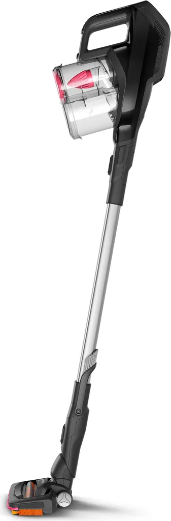SpeedPro ist flexibel und einfach zu handhaben. Der Staubbehälter befindet sich an der Oberseite, was einen niedrigeren Winkel oder sogar die komplett flache Verwendung auf dem Boden ermöglicht, damit auch schwer erreichbare Stellen unter niedrigen Möbeln erreicht werden.