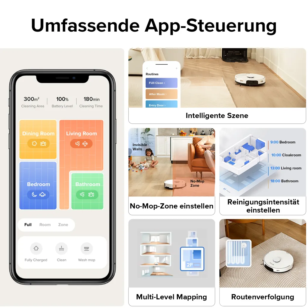 Kochst du viel und gerne? Du musst meistens die Saugstärke hochregeln, wenn du den Roboter in die Küche schickst? Landet häufig das Futter deiner Haustiere auf dem Boden? Dann lege doch eine Routine für diese häufigen, aber meist sofort erforderlichen Aufgaben fest, die mit einem einfachen Fingertipp ausgelöst werden können. Du kannst deinen Routinen auch Zeitpläne hinzufügen.
