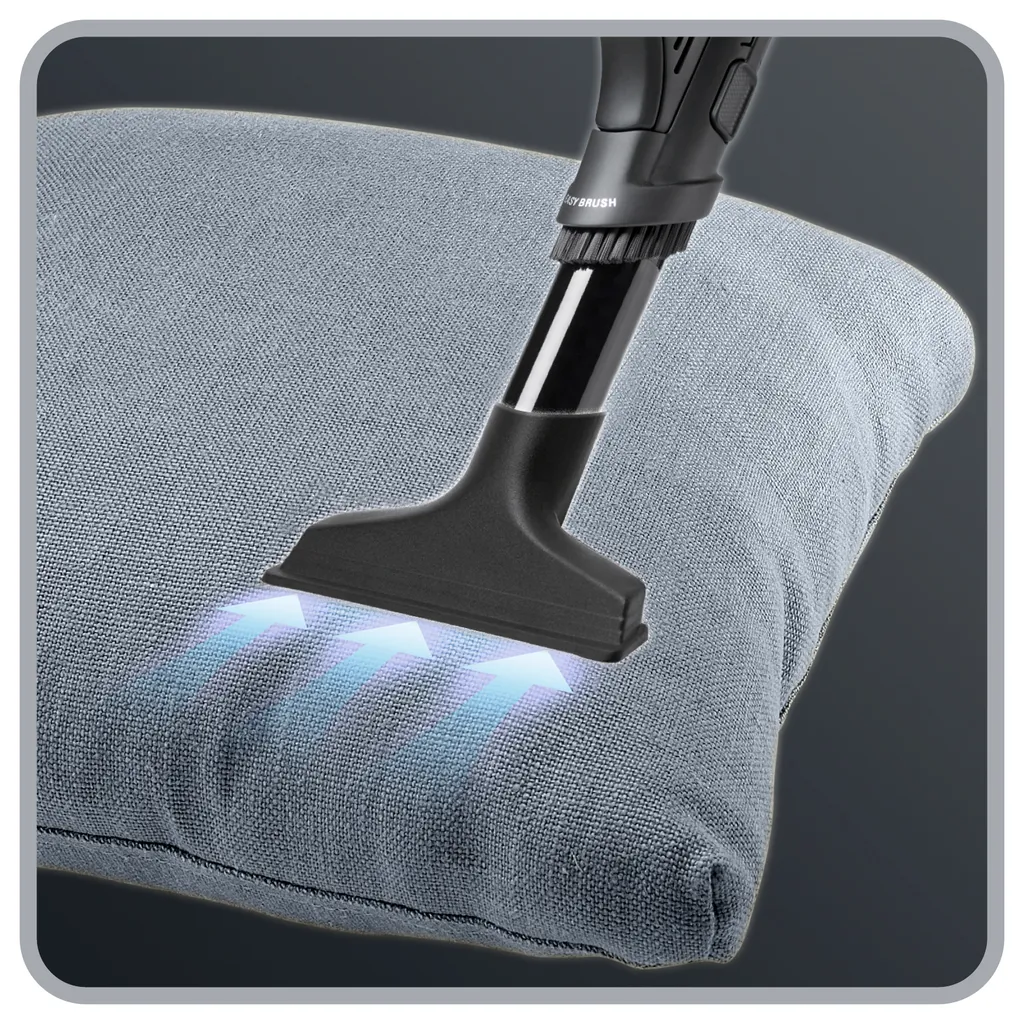 Zubehör: Polsterdüse, Fugendüse und Möbelbürste im Griff integriert