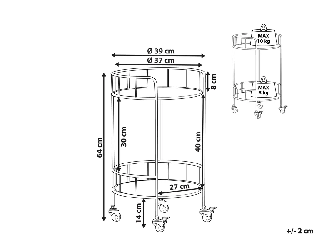 Industrieller Küchenwagen mit 2 Ablagen. Haben Sie immer zu wenig Platz, um Dinge in der Küche oder im Bad aufzubewahren? Dieser Küchenwagen wird als temporäre, leicht bewegliche Aufbewahrungsmöglichkeit überall im Haus einen Verwendungsort finden. Seine 2 Ablagen bieten reichlich Stauraum für alles, was Sie möchten, von Werkzeugen und Utensilien bis hin zu anderen Kleinigkeiten, Weinflaschen sowie Pflanzen. Die praktische Stoppfunktion verhindert, dass sich der Wagen bewegt und die hohen Ränder schützen Gegenstände vor dem Herausfallen.