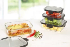- Dank Silikonrand und -laschen am Deckel luftdicht zu verschließen