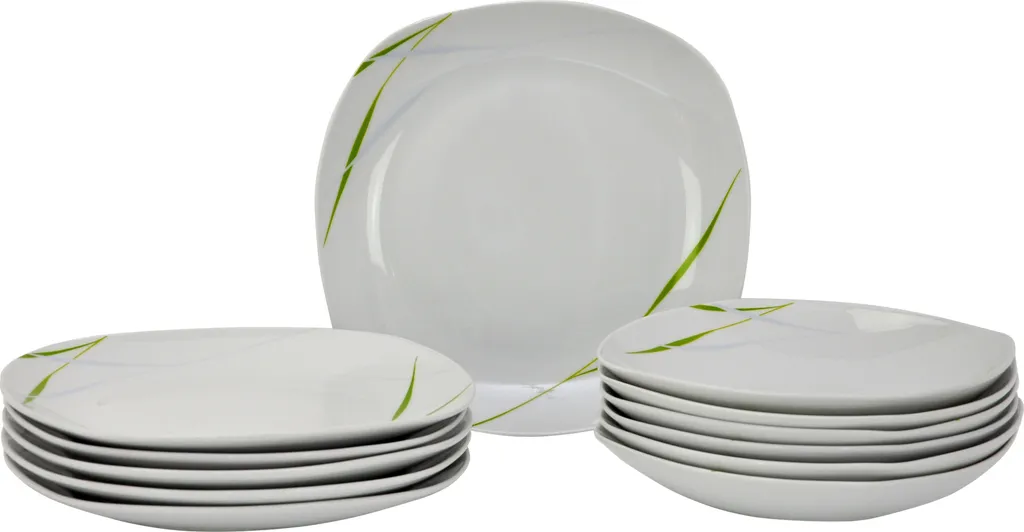 Die leicht eckige Form und das grün / graue Gräserdesign geben dem Tafelservice eine ganze besondere Ausstrahlung.