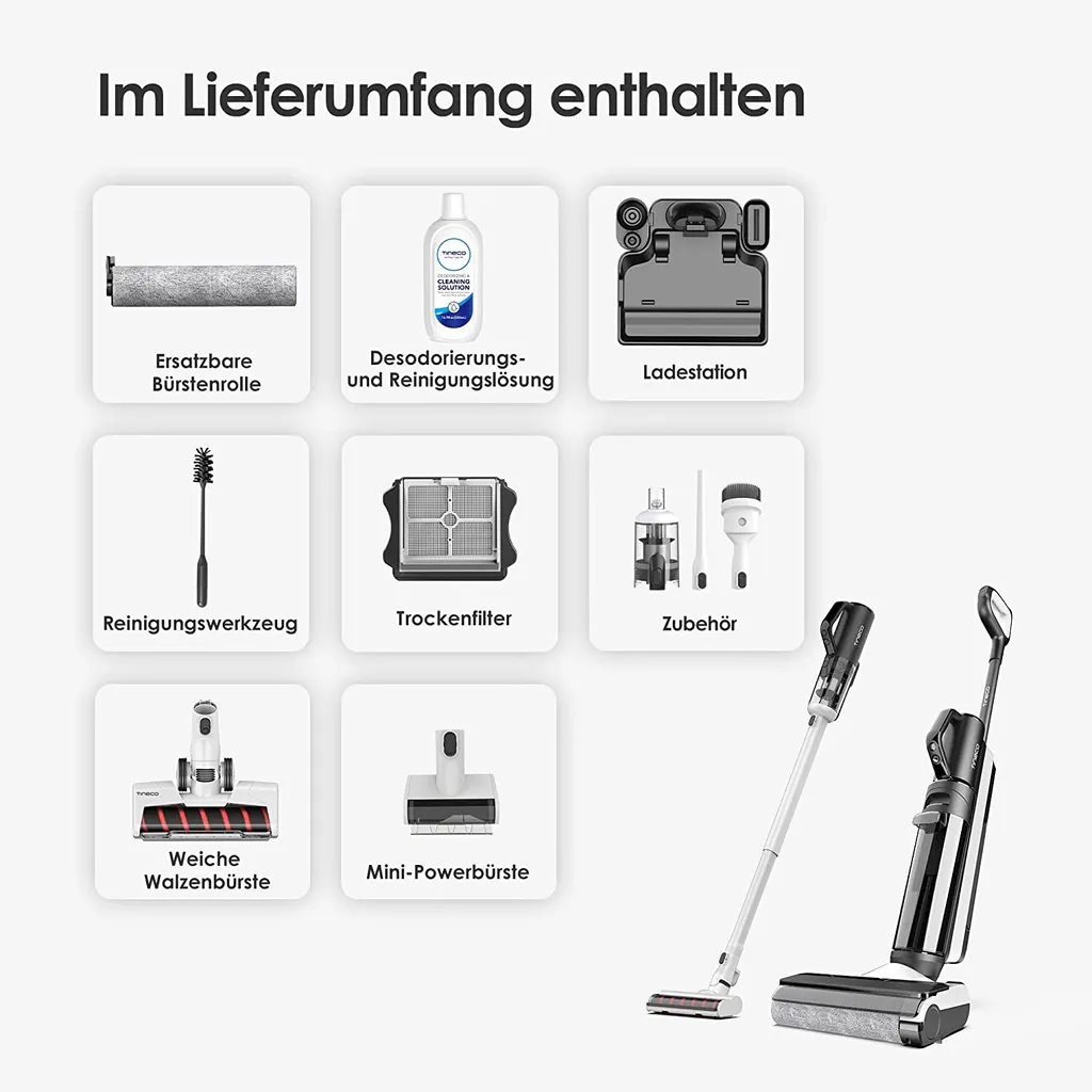 - SMART FLOOR WASHER: Der Floor Washer reinigt nasse oder trockene Verschmutzungen und beseitigt mühelos hartnäckige und klebrige Verschmutzungen auf Hartböden. Mit Tinecos proprietärer iLoop-Smart-Sensor-Technologie passt er Saugkraft, Wasserdurchfluss und Bürstenwalzengeschwindigkeit automatisch an, um alle Verschmutzungen zu beseitigen.
