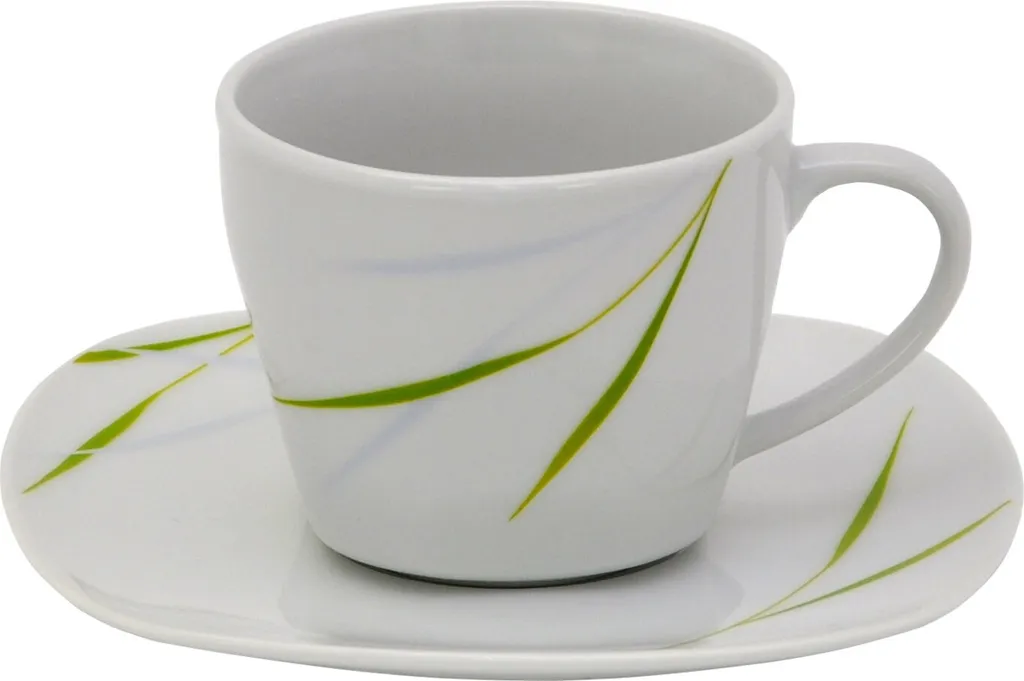 Die leicht eckige Form und das grün / graue Gräserdesign geben dem Kombiservice eine ganze besondere Ausstrahlung.