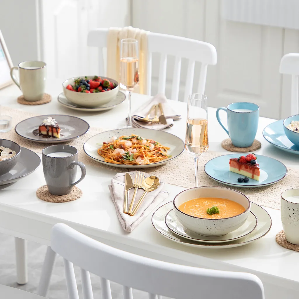 - Vintage Aussehen. Aus hochwertigen Steinzeug hat diese Serie ungewöhnliches Design – die Glasur mit Flecken, was Ihre Tafel ein absoluter Hingucker macht.