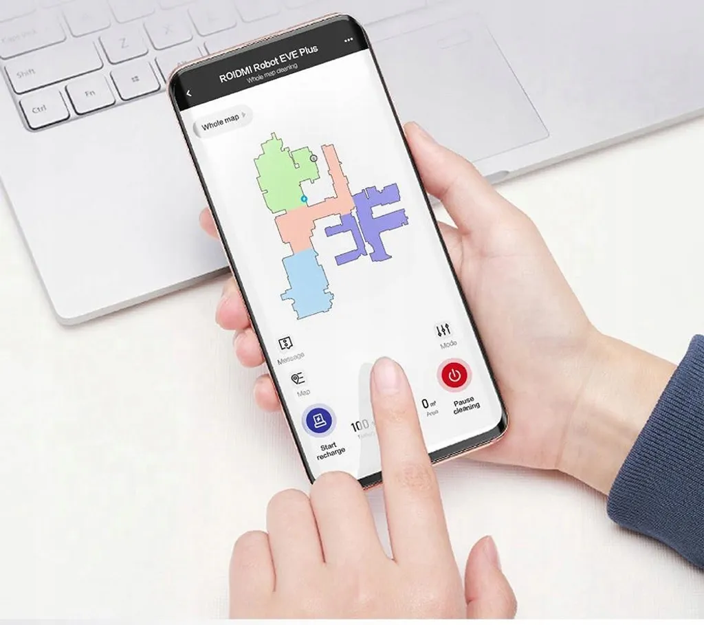Wenn Sie nicht zu Hause sind, können Sie es einfach reinigen, öffnen Sie einfach die ROIDMI-App und Sie können es mit einer Taste fernsteuern.